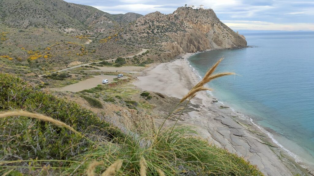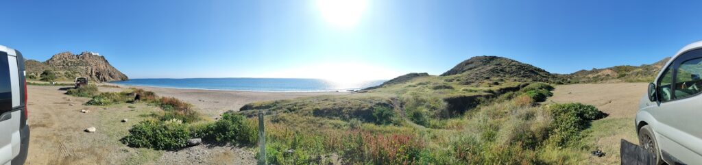 Palomares turns out to be one of the little gems so far. Well, not so much where we camped but the beach just a short 40 minute drive away, Bordenares. We camped at Palomares along with probably another 100 vans (the place can probably park about 500!) and during the day we went to Bordenares. The reason for this is that the beach there is in a national park and there’s no camping is allowed. An extra hour and a half driving for the day was well worth it.