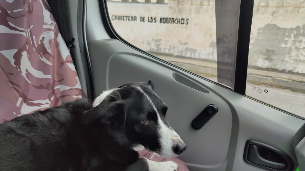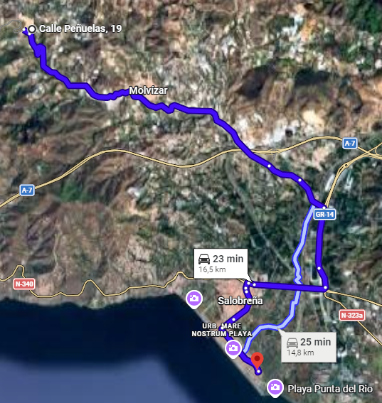 Twelve days and 2155 miles of sometimes leisurely travel, sometimes a little bit too much travel for one day, and we’re at a milestone. Ítrabo. A small mountainside village just a few minutes above Salobreña. I can see wonderful walk opportunities for Tippi and me and we’re only minutes from the beach along the ‘Carraterra de los Borrachos’. You can look that one up yourself.