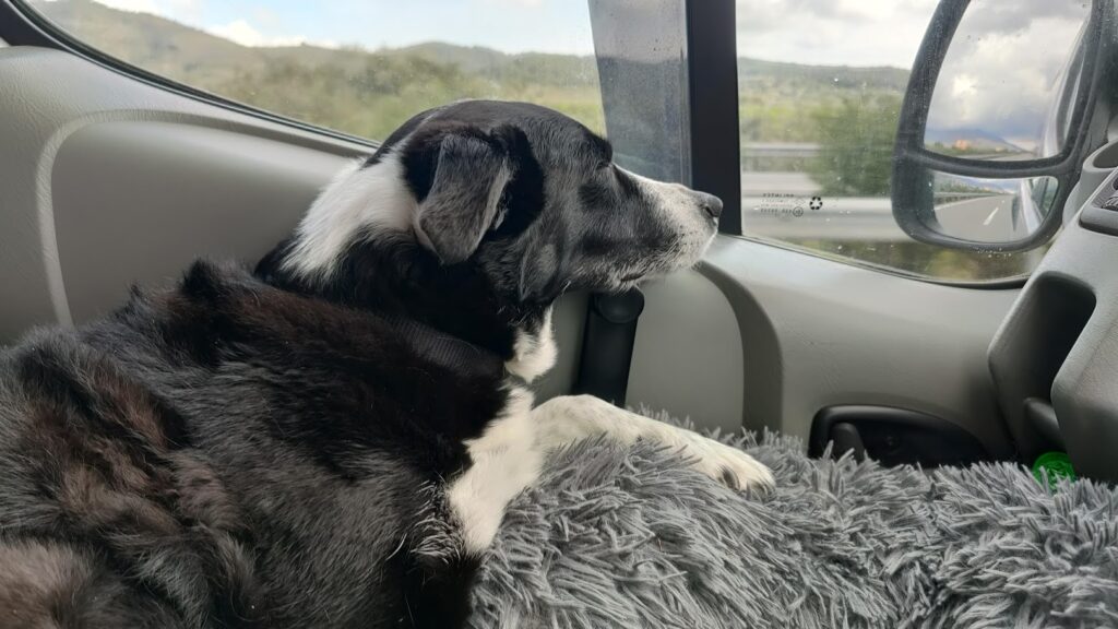 The past twelve days have been good though. Tippi was a superstar, sleeping in the front seat with her head on the window winder, or spread out as wide as she could manage on her bed trying not to knock over her travel water bowl and doing a sterling job of it.